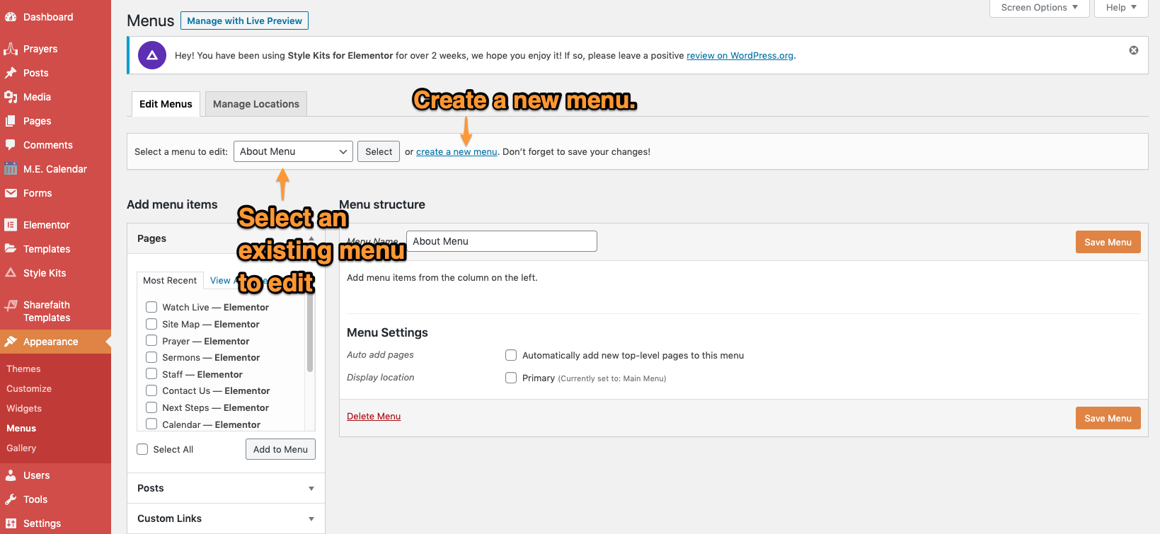 For more information on how to create and edit a Menu, check out this article by Wordpress: WordPress Menu User Guide