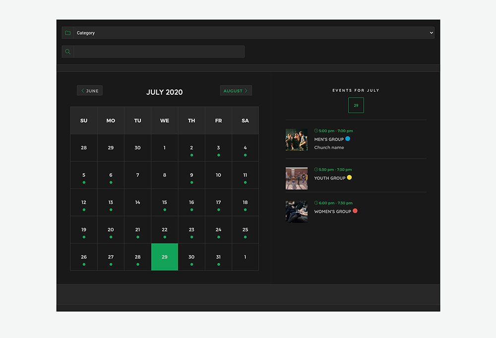 - Sanctuary | Calendar Monthly View MEC Section (Modern Events Calendar Plugin) - or - 3. Sanctuary | Calendar Monthly View TEC Section (The Events Calendar Plugin)