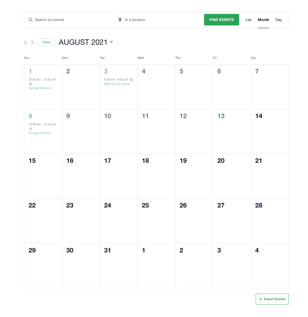 - Learn how to use MEC here: Church Websites: Elementor: Widgets: Modern Events Calendar Lite (M.E. Calendar)