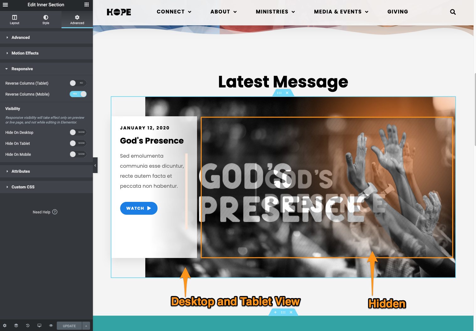 To edit the Section Template, navigate to Templates Hope | Latest Message Section Click "Edit with Wordpress."
