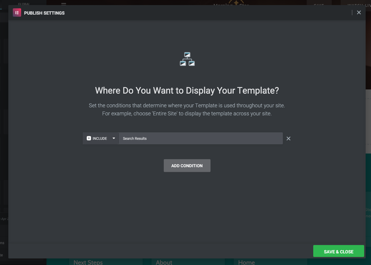 Navigate to Templates Theme Builder Sanctuary | Search Results click "Edit with Wordpress."