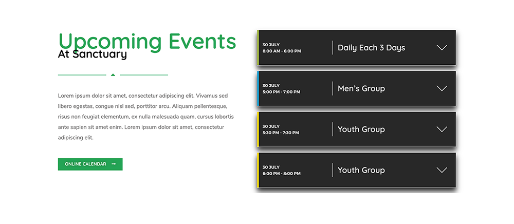 - Sanctuary | Upcoming Events MEC Section (Modern Events Calendar Plugin) - or - 5. Sanctuary | Upcoming Events Section