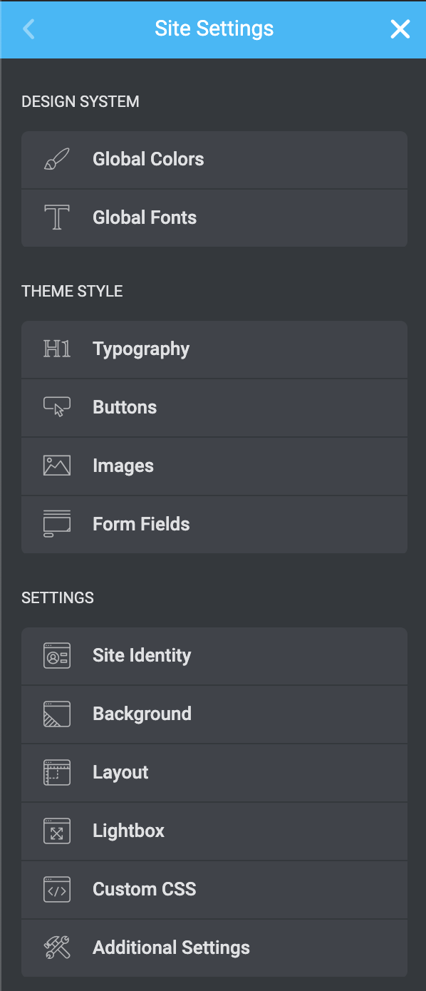 Global Styles are set up in your Site Settings. These centralized settings are applied across your site for a consistent design.