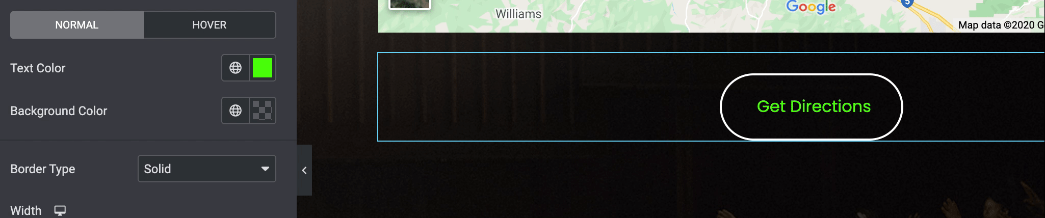 - To override the current styles with your new changes, click the "Update" button at the lower left of the menu. Note that individual headings, buttons, and items on your site that have specific colors or styles applied to them will not get changed by the global styles - for example, this button needs its color setting set to a "global" color here if you want it to take the site's global color: