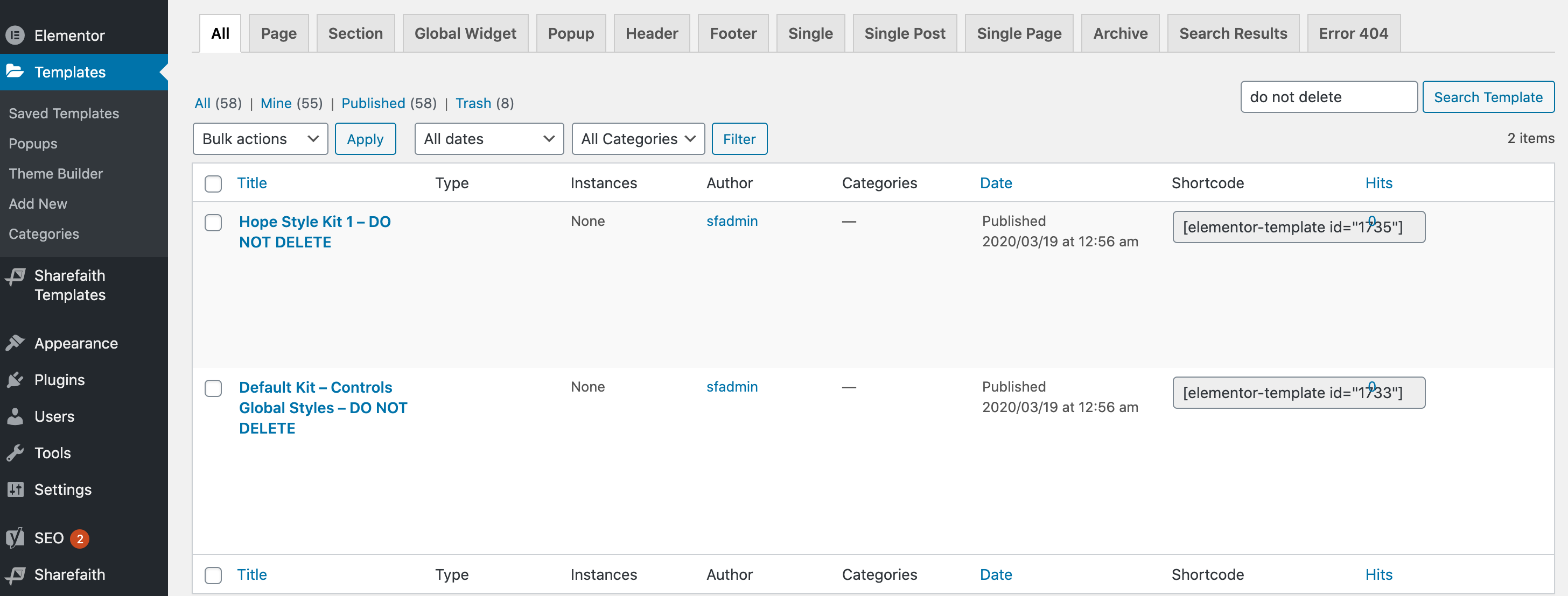 There are a few templates that cannot be deleted without losing all your site's style information. These are noted as DO NOT DELETE in the title.