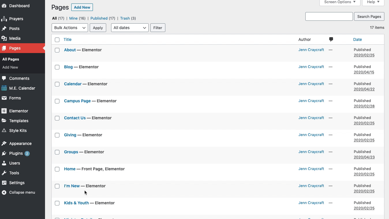 - Navigate to the page where you would like to add your calendar. Ex: Pages Calendar.