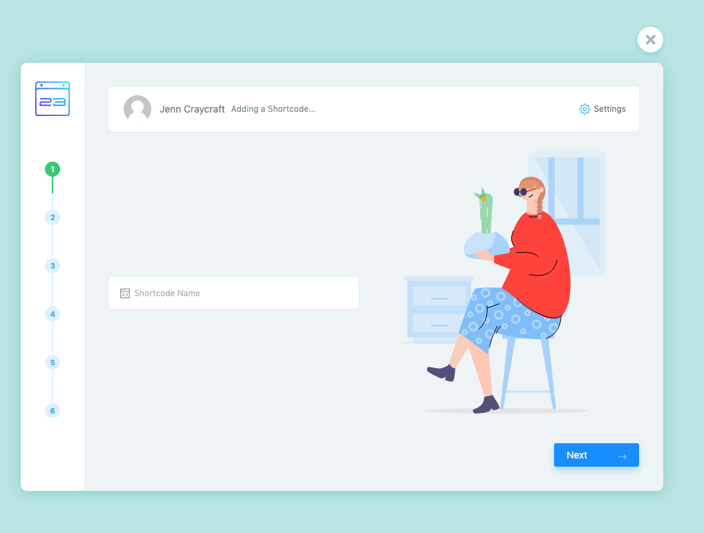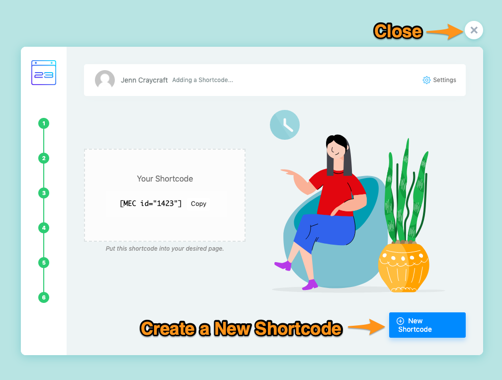 - Follow the 6 Step guided prompts to create your shortcode.