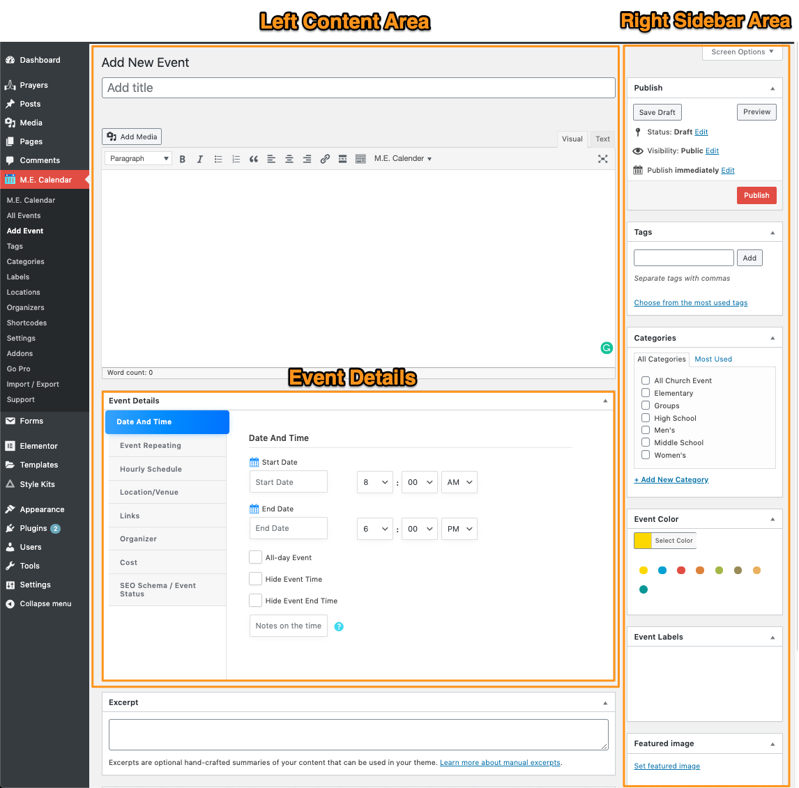 Event Details: This section allows you to fill out all the specifics for your event.