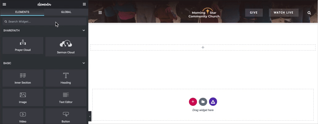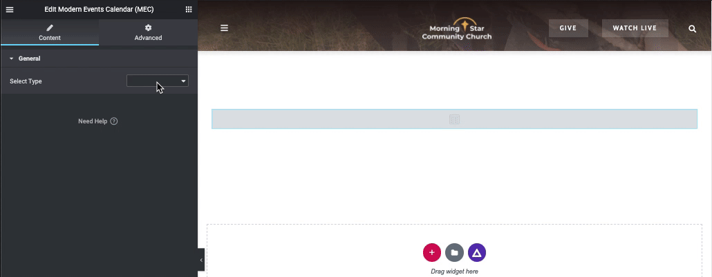 - Add the M.E. Calendar widget to a Section on the page.