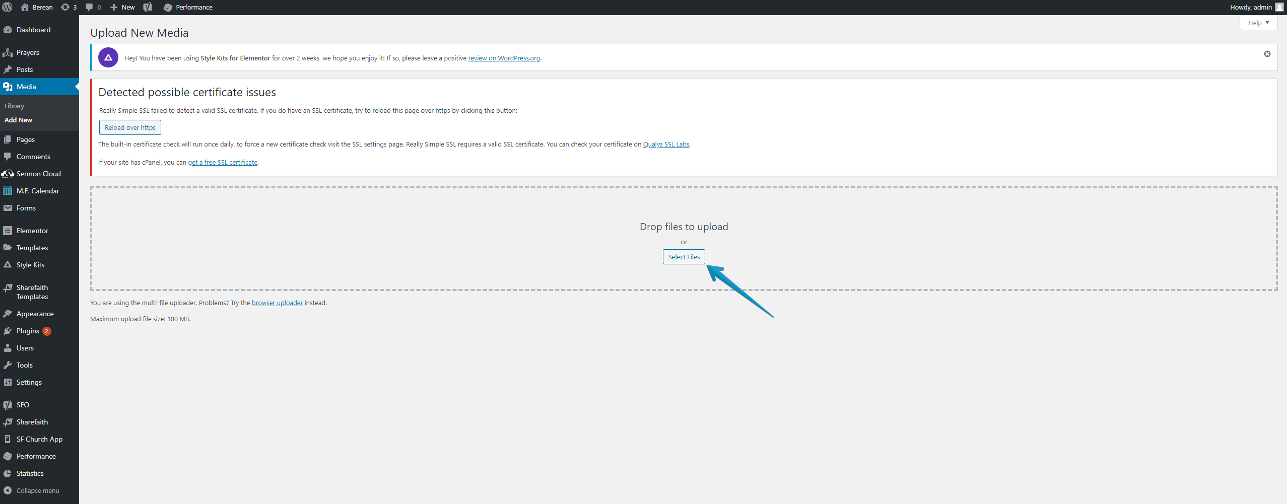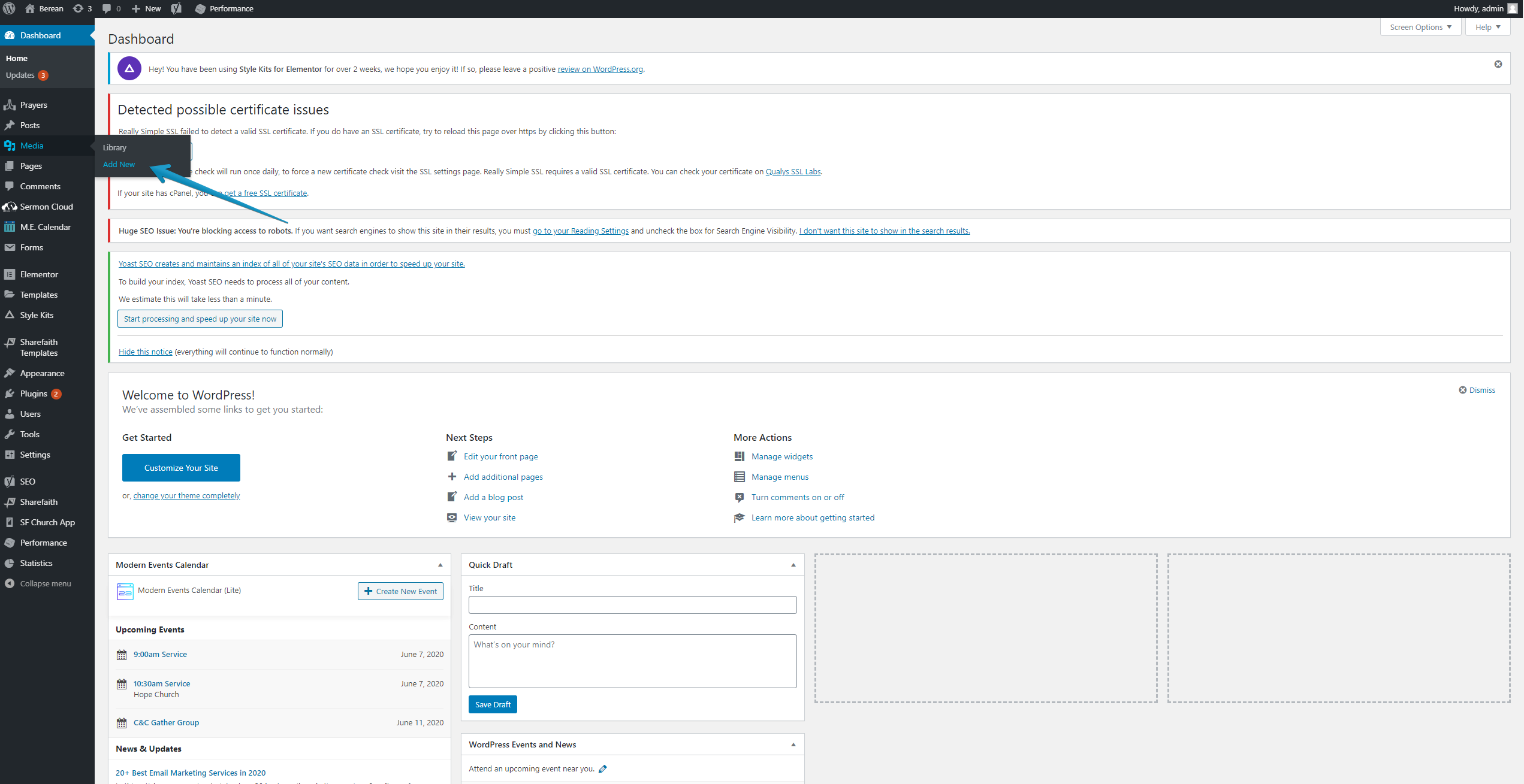 - Start by uploading your PDF file into your website's Media Library by selecting Add New from the Media menu option.