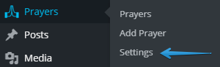 You can manage your ministry's Prayer Cloud settings by navigating to the WordPress Dashboard, hovering over Prayers, and clicking on Settings.