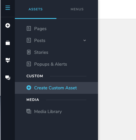 To begin, navigate to the CMS sidebar and select “Create Custom Asset” under the Custom section.