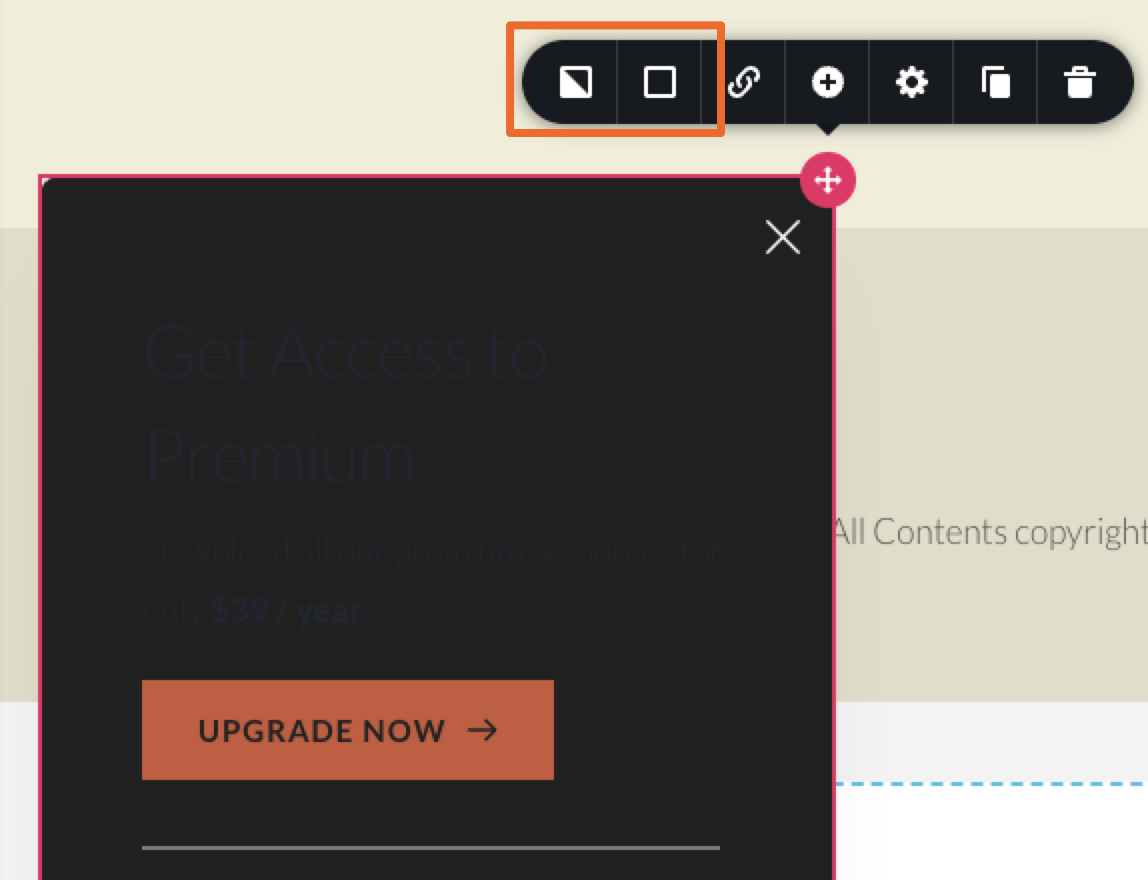 - A central canvas for the pop-up content