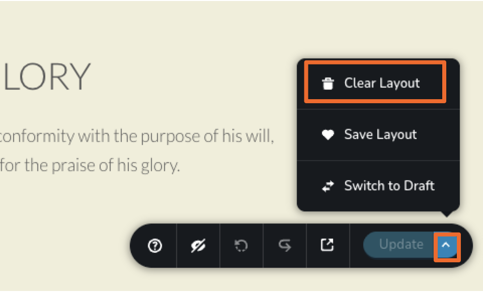 - Select Clear Layout to remove all existing content.