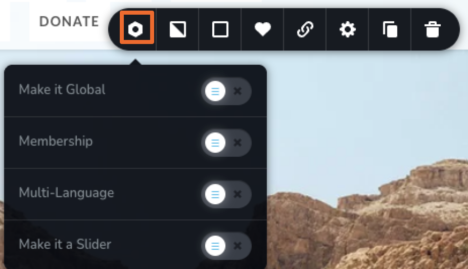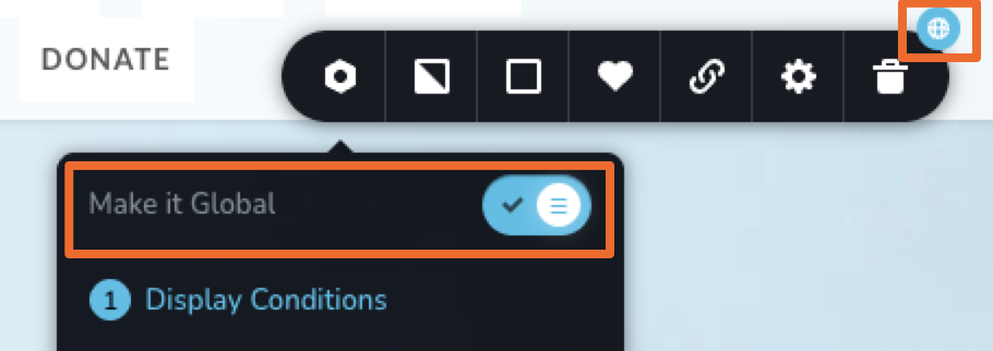 Once activated, the block will display a blue globe icon in the top-right corner, indicating its global status.