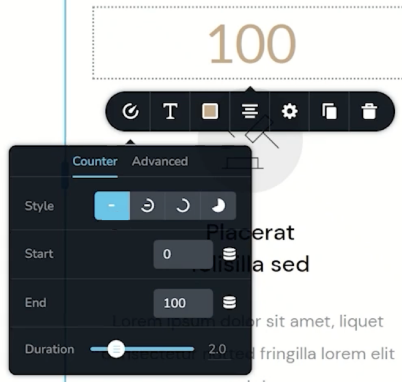 The Counter element in Cloud Sites is a dynamic tool used to visually display numerical data such as statistics, milestones, or performance metrics. Commonly seen on websites to highlight achievements or figures like units sold, funds raised, or customer counts, this element adds movement and emphasis to key data points.