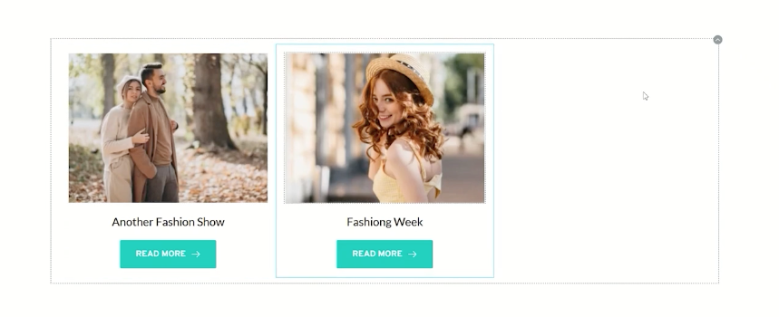 The element will automatically populate with the number of posts available. For example, if only two posts exist, those will be displayed with their featured images.